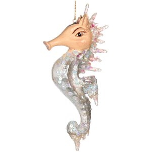 Размер: 11 см. Материал: полистоун. Декор: блёстки, пайетки. Цвет: жемчужный. Тип крепления: подвеска.