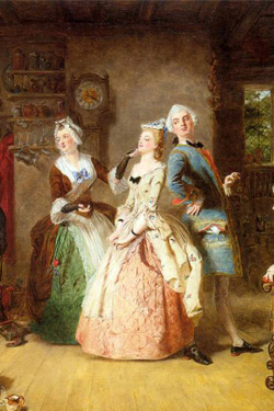 Джентльмен, который заинтересовался юной леди, никогда не мог рассчитывать на то, что останется с ней наедине. Чаще всего он наносил визиты в дом её семьи, и они разговаривали в присутствии родителей или сопровождающих. Каждый пытался определить характер другого. Женщина опасалась мужчины, если ему нравились «низкие и пошлые развлечения», в то время как мужчина хотел убедиться, что его будущая жена будет хорошей компанией и пытался определить, выполняет ли она свои домашние обязанности.
