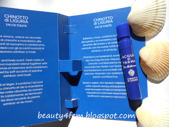 Итальянский парфюмерный дом Acqua Di Parma представляет новую коллекцию ароматов Blu Mediterraneo, навеянных прекрасными и яркими Средиземноморскими пейзажами, очаровательной атмосферой берегов Италии. Одним из парфюмов серии стала композиция Chinotto Di Liguria, которая в полной мере раскрывает звучание горьких апельсинов кинотто, являющихся редким сортом и настоящим сокровищем Апеннинского полуострова. Туалетная вода преподнесена в стильном голубом флаконе в доступных объемах 75 и 125 миллилитров. Композиция аромата открывается бодрящим цитрусовым звучанием, в котором сменяются ароматы мандарина и кинотто. Эти фрукты относятся к одному виду, но обладают такими контрастными оттенками звучания! Игра контрастов продолжается в нотах сердца, где цветочная нежность герани и жасмина тонко переплетается с травяной пряностью розмарина и кардамона. Аромат базируется на плотной основе из мускуса и пачули, придающей ему чувственности и гармоничности. Acqua Di Parma Chinotto Di Liguria – отличный выбор для любителей шипровых ароматов с ярким цветочным звучанием. Этот аромат подойдет для поклонников цитрусовых, которые устали от традиционных оттенков апельсина, лимона и бергамота, ведь они уже успели приесться. Кинотто – это особый дар природы, обладающий ни с чем не сравнимым ароматом, и вы просто обязаны его ощутить!