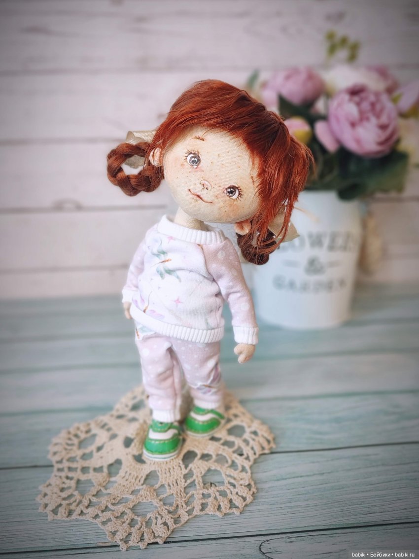 благотворительный вечер, где все желающие смогут поделиться своей игрушкой с каким-нибудь грустным малышом. Возможно: фотосессии, работа с другими мастерами. Например, ты шьёшь игрушки, и сотрудничаешь с фотографом, который сделает фотосессию в модном кафе. Преподавание — отличный вариант. Освоил сам технику, стал мастером, если есть желание и терпение — поделись с другим. Еще одно из стремлений — помочь людям раскрепоститься посредством создания игрушки (куклотерапия для взрослых). Кукла ручной работы – она живая, она настоящая. У нее свой характер, своя душа. Порой, даже кажется, что кукла создает себя сама, а ты лишь непосредственный помощник. Она как ребенок растет на твоих глазах и развивается. А ты даже представить не можешь, что в завершении получится. Планировала сделать леди: гордую, важную. А получилась веселая и шустрая Ленка. Именно – Ленка, не Лена, не Леночка, а Ленка. Когда кукла не соглашается с начальной задумкой, я всегда договариваюсь мирно, меняя первоначальный замысел по мере работы. Получается некое «совместное творчество». Результат обычно нравится больше, чем если бы я «гнула свою линию».
