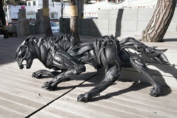 Талантливый скульптор Yong Ho Ji (Йонг Хо Джи) из Кореи создает необыкновенные, просто умопомрачительные скульптуры из обычных автомобильных шин. Чаще всего, образами для создания скульптур являются животные, но попадаются и необычные существа, такие, как — драконы, минотавры и другие фантастические чудовища.