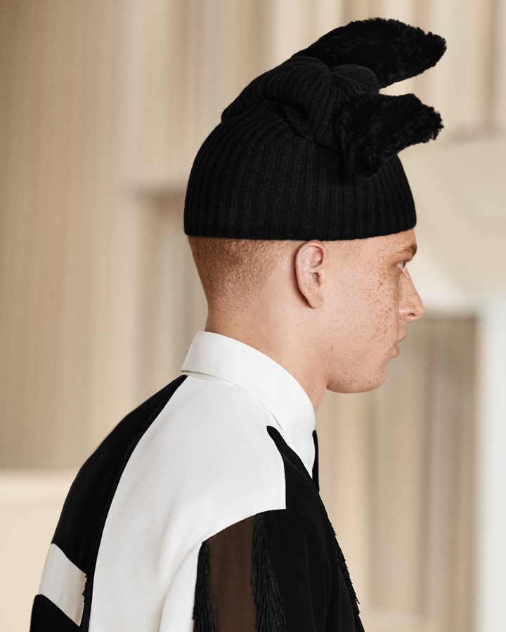 Еще эта коллекция Burberry — беззастенчивый оммаж Тиши самому себе времен Givenchy. И дело не только в количестве луков, но и в отдельных символах, которые мгновенно считывают поклонники дизайнера. Это и повязанные на бедра вещи (в случае с Burberry осень—зима 2021 — джемперы) — прием, который Тиши использовал почти во всех своих мужских коллекциях для французского дома. И его любимые звезды, которые впервые Тиши активно использовал в коллекции Givenchy Menswear весна 2010. И шапки с имитациями ушей животных: если сегодня Тиши подражает в них зайцам, то в 2011 году, в коллекции Givenchy осень 2011, это были собаки. И мужские юбки — в тон курткам, жакетам или плиссированные — как в Givenchy осень 2012. И яркие графичные аппликации, которые мы видели у Тиши в Givenchy весна 2014, созданные под впечатлением от стиля африканских подростков. И мех, который он активно использовал в Givenchy осень 2014. И наконец, массивные аксессуары-кулоны. Когда-то в 2014 году Тиши повесил на шеи моделей ключ от метафорической тюремной камеры, из которой всем нам иногда необходимо выбираться, а в этот раз на шеях манекенщиков свисток.