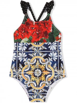 Смешанный принт, вставки с оборками, круглый вырез и эластичная модель. Цвет: разноцветный. Пожалуйста, примеряйте купальники и пляжные шорты только поверх собственного белья.