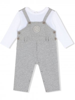 Нашивка с логотипом спереди, декоративные пуговицы, круглый вырез, длинные рукава, петли для ремня и застежка на кнопках сзади.