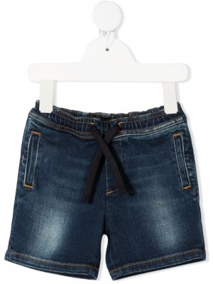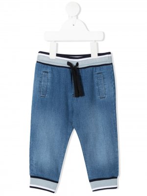 Нашивка с логотипом сзади, эластичный пояс, пояс на шнурке, два прорезных кармана по бокам и два кармана с листочкой сзади.