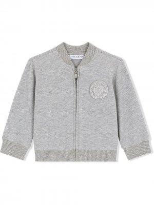 Воротник-стойка, края в рубчик, застежка на молнии спереди, нашивка с логотипом спереди и длинные рукава. Цвет: серый.