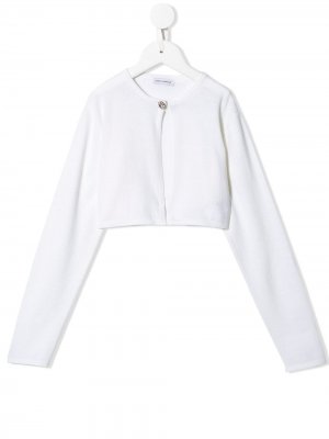 Принт с логотипом на груди, графичный принт, застежка на пуговицы сзади, круглый вырез, длинные рукава и детали в рубчик. Цвет: белый.