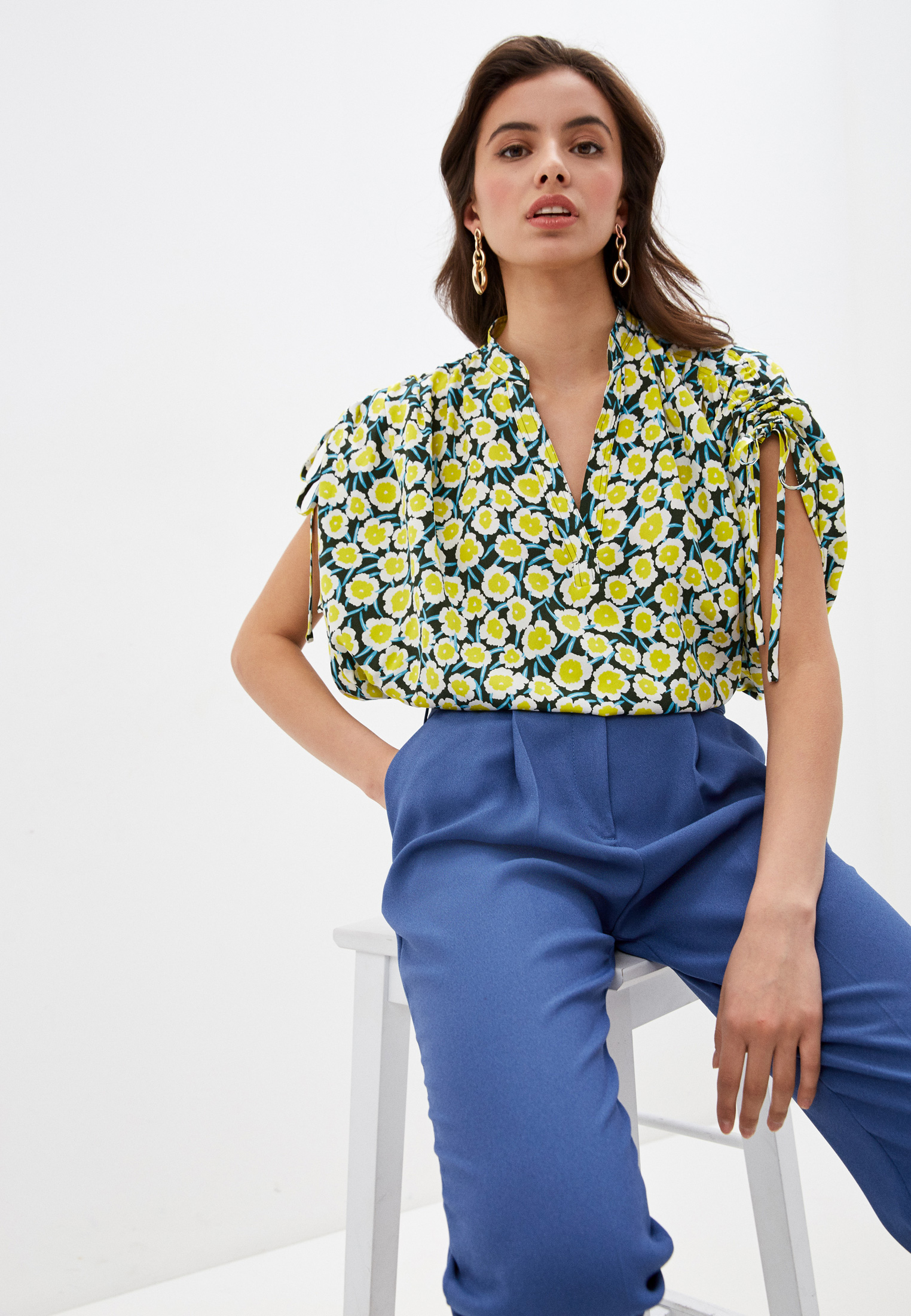 Блуза Diane von Furstenberg. Цвет: синий. Сезон: Осень-зима 2021/2022.