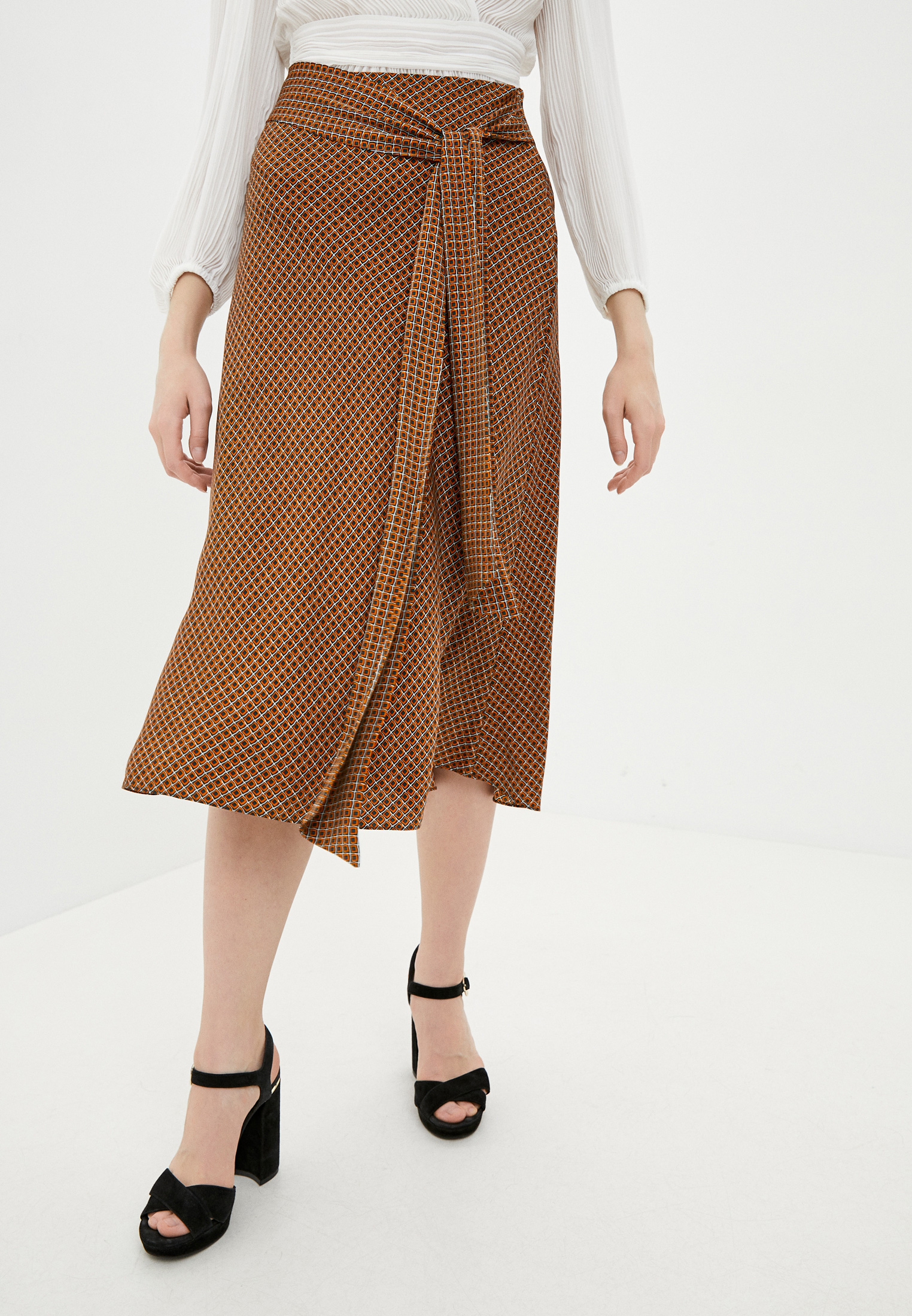 В сезоне весна-лето 2020 года дизайнеры бренда, основанного Дианой фон Фюстенберг, придали нового звучания леопардовому узору с помощью цвета. Эту юбку выполнили из мягкого приятного на ощупь шелка насыщенного.