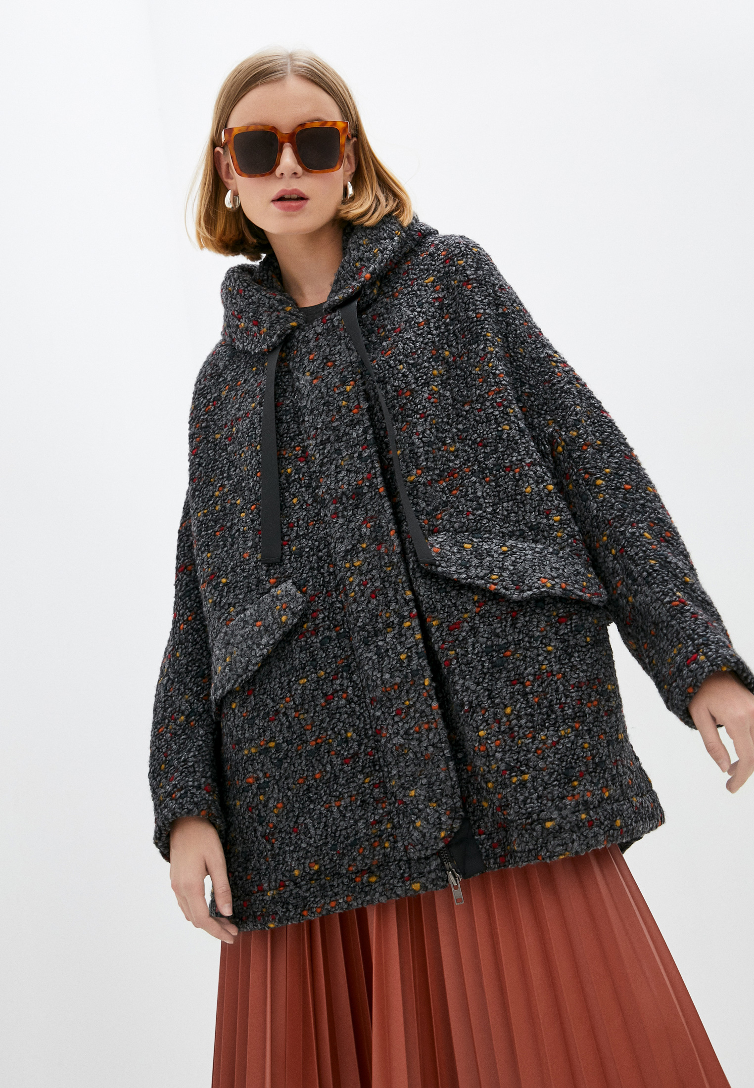 Полупальто Diane von Furstenberg. Цвет: серый. Сезон: Осень-зима 2021/2022.