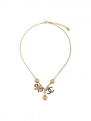 Тонкая цепочка, логотип CC, украшения из горного хрусталя и застежка-карабин. Цвет: черный. Обратите внимание, что это товар с историей. Несмотря на отличное состояние, он может иметь незначительные дефекты.