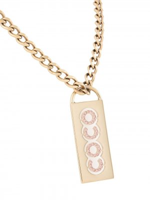 Подвеска с логотипом, вырезные детали, украшения из горного хрусталя, кубинская цепочка и застежка-карабин. Цвет: розовый. Обратите внимание, что это товар с историей. Несмотря на отличное состояние, он.