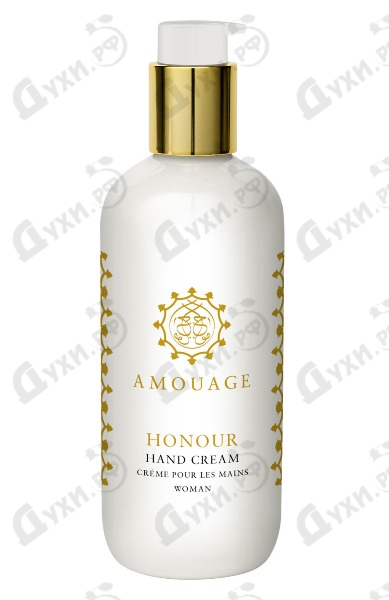 Парфюмерная композиция Amouage Honour women состоит их верхних нот кориандра, перца и ревеня; нот сердца: гвоздики, жасмина, гардении, мексиканской туберозы и ландыша; нот базы: ветивера, опопонакса, амбры, ладана и кожи.