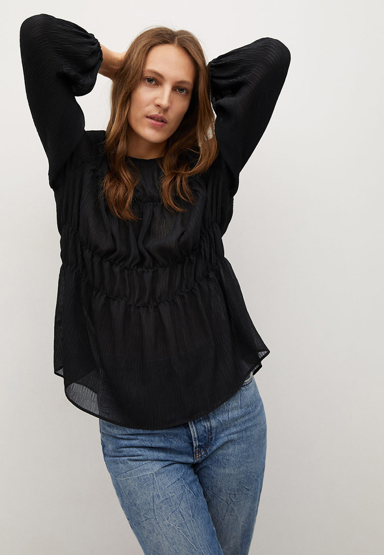 Блуза из двойного шелкового жоржета с объемными рукавами (490 €)