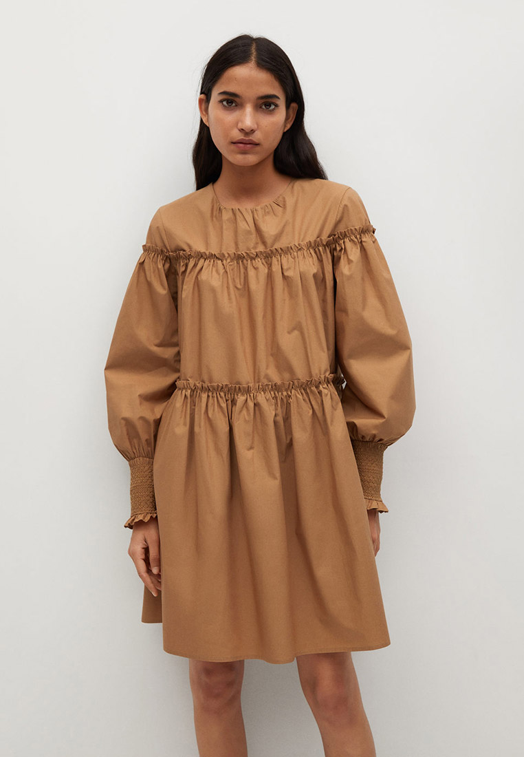 Не новинка, но все еще в тренде. Некоторые бренды предлагают нам носить жакеты с острыми или уж слишком объемными плечами, некоторые (но не все) – вполне носибельные варианты. В таком образе главное – силуэт. Пышный верх лучше сочетать с обтягивающим или повторяющим силуэт низом. Если же выбираете объемный и низ, то постарайтесь выделить талию. В коллекциях также было много платьев с объемными рукавами разных фасонов, см. фото: