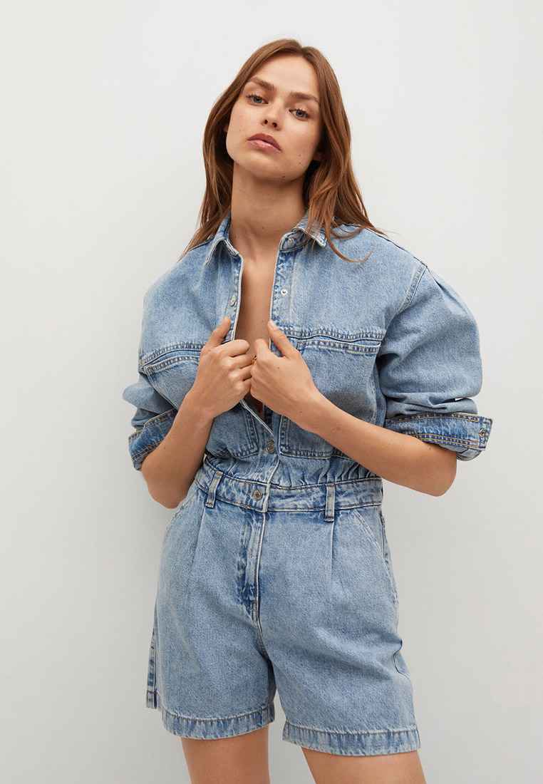 Стоит отметить еще один активный тренд родом из нулевых. Это тотал-деним. Blumarine поймали ностальгию по бабочкам и создали множество разных комплектов с юбками и брюками разной длины и формы. Dolce&Gabbana представили яркий джинсовый комплекс, усеянный стразами. MSGM показали джинсовые костюмы с шортами и широкими штанами на низкой посадке в духе того времени.