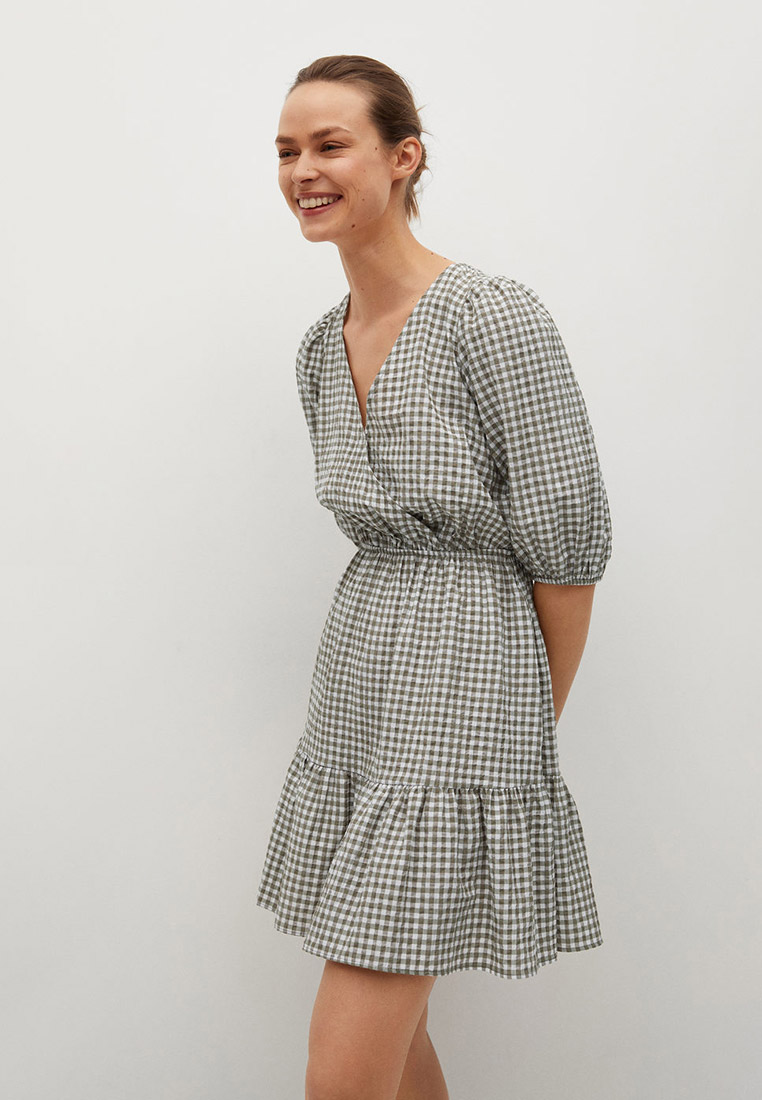 Перекрещенное платье с V-образным вырезом и драпировкой со стразами (550 €)
