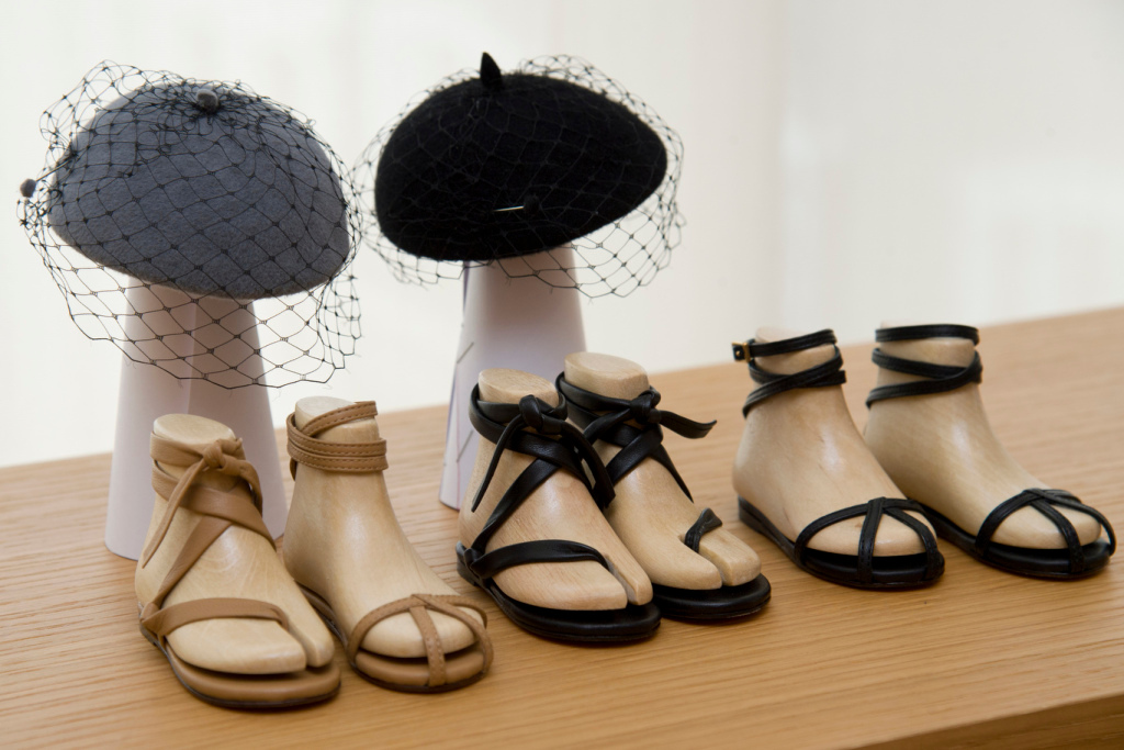 Интересно, что на показе отсутствовала обувь на высоком каблуке. Модели дефилировали в сандалиях или в лодочках с низким каблуком-рюмкой.