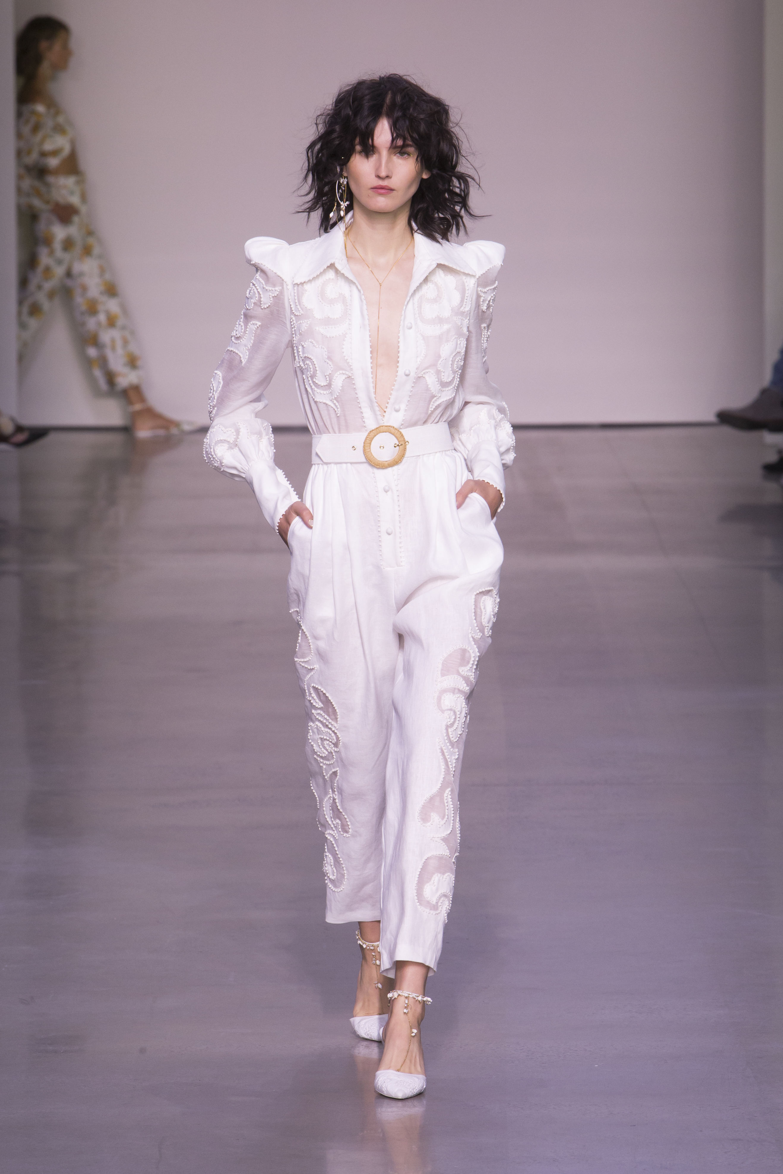 Многие одежды от Zimmermann украшают разные узоры. Всегда в тренде платья с цветочным принтом. Интересными фасонами стали миксы в мелкий горох, орнаменты на космическую тематику.