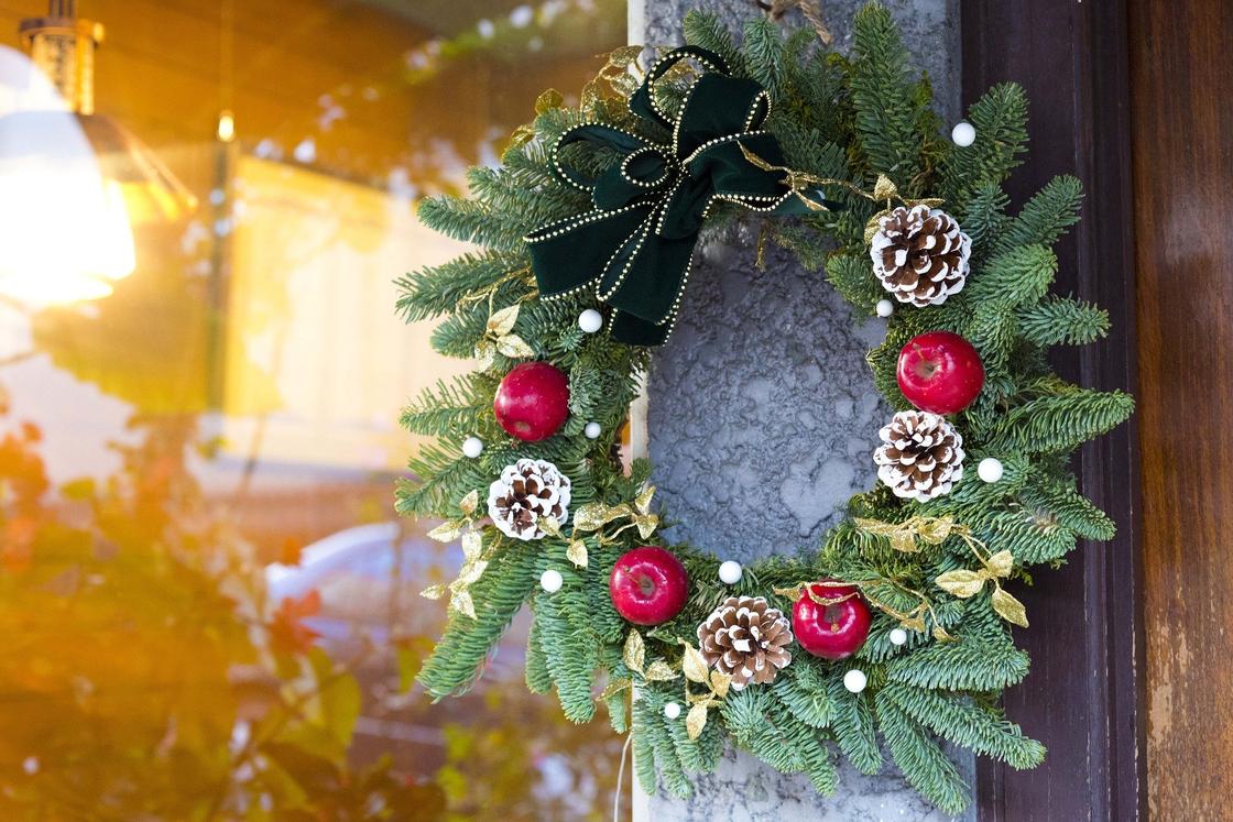 Рождественский венок можно сделать из чего угодно – из елочных украшений, искусственных веток и дождика. Также вы можете смастерить еловый букет, украсить его цитрусами, орешками, пряниками и ванильными палочками и подарить на Новый год 2021 подруге, маме или начальнику.