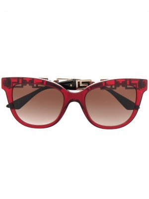 Знаковый орнамент Greca, оправа «кошачий глаз», затемненные линзы, прямые дужки и дужки с закругленными концами. Прилагается защитный чехол.