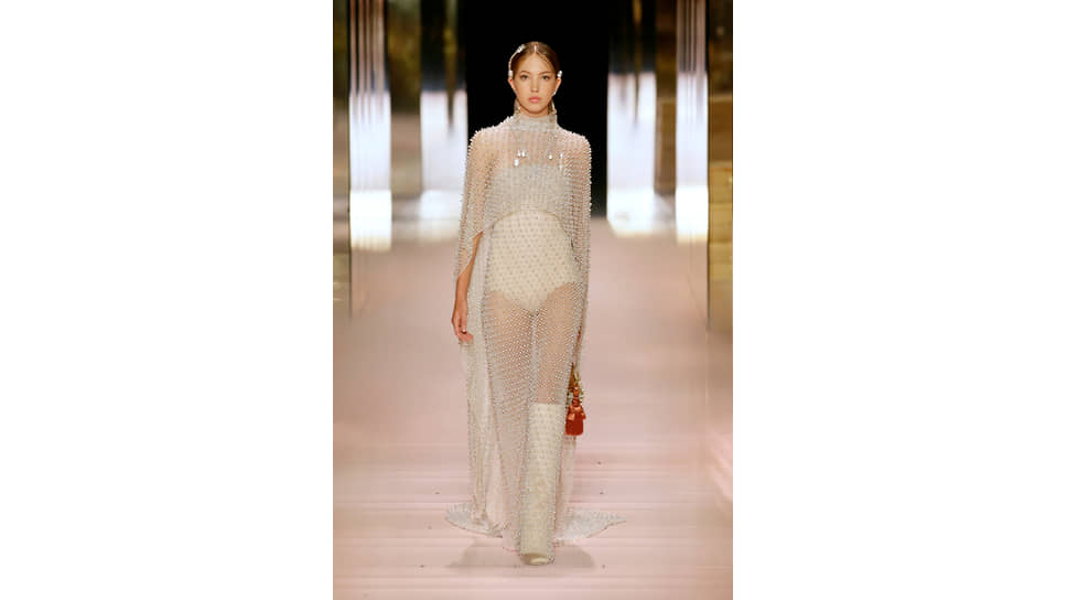 У парижского дома моды показ походил на летнюю свадьбу – Вирджинии Виар (новому креативному директору дома) даже удалось пригласить гостей. Конечно, главных друзей модного дома: Пенелопу Крус, Ванессу Паради, Лили-Роуз Депп и Марион Котийяр. Гостьи заняли свои места в пустом «зрительном зале», а остальные свободные стулья после прохода по подиуму заняли сами модели. Не обошлось и без традиционного свадебного наряда: невеста выехала к зрителям на белом коне, представив элегантное и сдержанное платье, расшитое стразами и жемчужными нитями. Восторг!