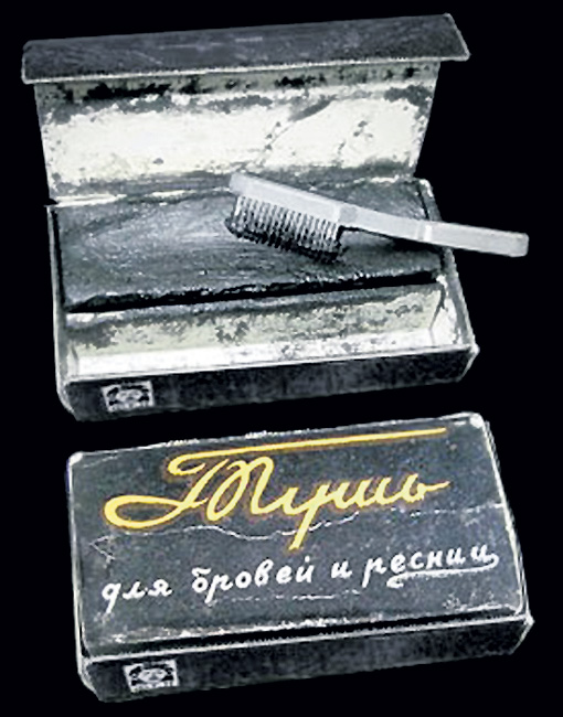Не было, наверное, в СССР женщины, которая бы не пользовалась тушью для бровей и ресниц “Невская косметика”. Представляла она собой черную твердую субстанцию (чем-то похожую на твердые детские краски, популярные в то же время), упакованную в небольшую коробочку. Прилагалась забавная плоская щеточка – своеобразная вариация на тему зубной щетки. Перед использованием тушь необходимо было слегка смочить водой. Но гораздо чаще макияж делали по принципу “дунул-плюнул-поехали”. Держалась такая тушь отвратительно, постоянно осыпалась. Возможно, что именно с этим связан утренний ритуал нанесения макияжа, который показан в популярном фильме Эльдара Рязанова “Служебный роман” (там же можно взглянуть и на чудо-щеточку). Если женщина рисковала накрасить ресницы и брови дома, а затем пройти по улице, то на работе она запросто могла появиться в роскошной маске енота или костюме панды. Капризы природы (дождь, снег, сильный ветер, повышенная влажность) сводили все усилия на нет.