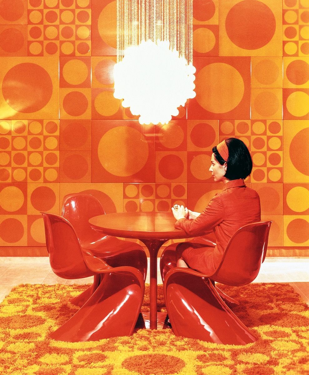 Космос постепенно становился поп-культурным явлением. За трансляциями запусков следили, не отрываясь от экранов; космонавты превращались в героев планетарного масштаба; дети мечтали быть космонавтами, да что дети — нет-нет да и каждый взрослый мечтательно засматривался в небо. Так что практически сразу у космоса появился свой мерч силами промышленных дизайнеров, которые, увлекаясь космической темой, экспериментировали с формами, материалами и цветами. Зарубежный промышленный дизайн 1960-х подарил нам иконические предметы, которые пользуются популярностью до сих пор. В первую очередь это, конечно, эргономичное кресло Globe финского дизайнера Ээро Аарнио, которое он создал в 1965 году. Благодаря эргономике и космической эстетике оно не раз привлекало режиссеров, которым было необходимо создать в кадре фантазийные интерьеры космических станций, как, например, в фантастической комедии «Марс атакует!». Аналогичным образом кресла Djinn Оливье Мурга, которые он придумал в 1965-м, заполнили один из самых запоминающихся интерьеров «Космической одиссеи» Стэнли Кубрика. Венский художник, скульптор и архитектор Вальтер Пихлер создал кресло, которое при других обстоятельствах вполне могло бы сойти за космический аппарат, Galaxy I. А датчанин Вернер Пантон, увлекаясь мыслями о межгалактических путешествиях и инопланетных формах, экспериментировал с цветами и округлыми планетарными формами, создавая космические интерьеры, как, например, штаб-квартира издательского дома Spiegel.