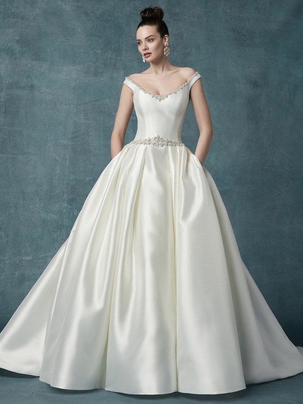 Обнаженные плечи ещё один тренд этого года. Свадебное платье с открытыми плечами — стильно, но не излишне откровенно.