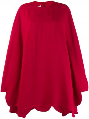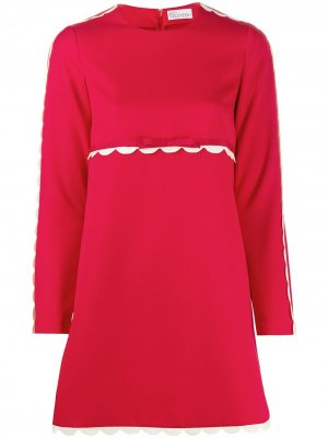 Волнистые края, круглый вырез, длинные рукава, приталенный силуэт и застежка на молнии сзади. Цвет: красный.