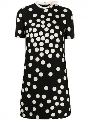 Принт в горох, бант, круглый вырез, короткие рукава и застежка на молнии сзади. Цвет: черный.