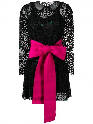 Бархатный материал, сплошной леопардовый принт, манишка и крупный бант. Цвет: черный.