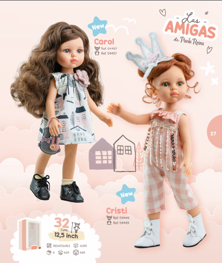 Получив лицензию, испанская кукольная компания основала в 1994 году бренд Паола Рейна, занимающийся выпуском многочисленных игровых кукол. Помимо 32 сантиметровых милашек по образам Рут Треффайзен, они выпускают также еще несколько различных линеек: более высоких кукол 46 см, кукол чуть поменьше ростом – 42 и 40 см, смешных, фантазийных малюток – эльфов (24 см), а также совсем маленьких голышей – пупсов 21 и 22 см. Среди кукол Паола Рейна можно встретить как девочек, так и мальчиков. Кроме того, каждая кукла ароматизирована нежным, сладко-фруктовым ванильным ароматом.