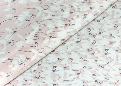 Натуральный шелк тип Valentino с подснежниками, цвет – розовый и цветы
