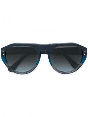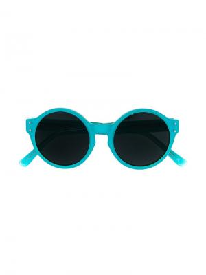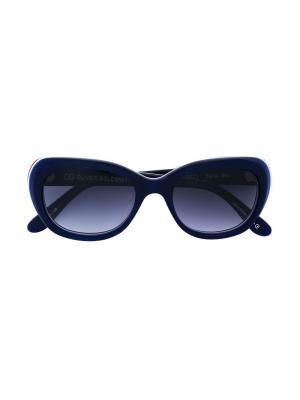 Синие солнцезащитные очки ‘Sophie’ от Oliver Goldsmith. Круглые оправы, градиентные линзы, прямые дужки с изогнутыми концами. Прилагается защитный чехол.