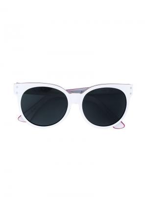 Белые солнцезащитные очки ‘Balko’ от Oliver Goldsmith. Круглые оправы, темные линзы, прямые дужки с изогнутыми концами. Прилагается защитный чехол.