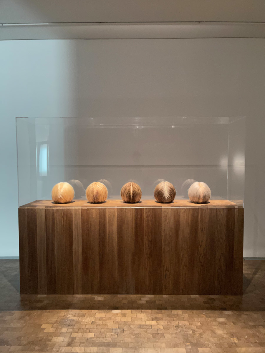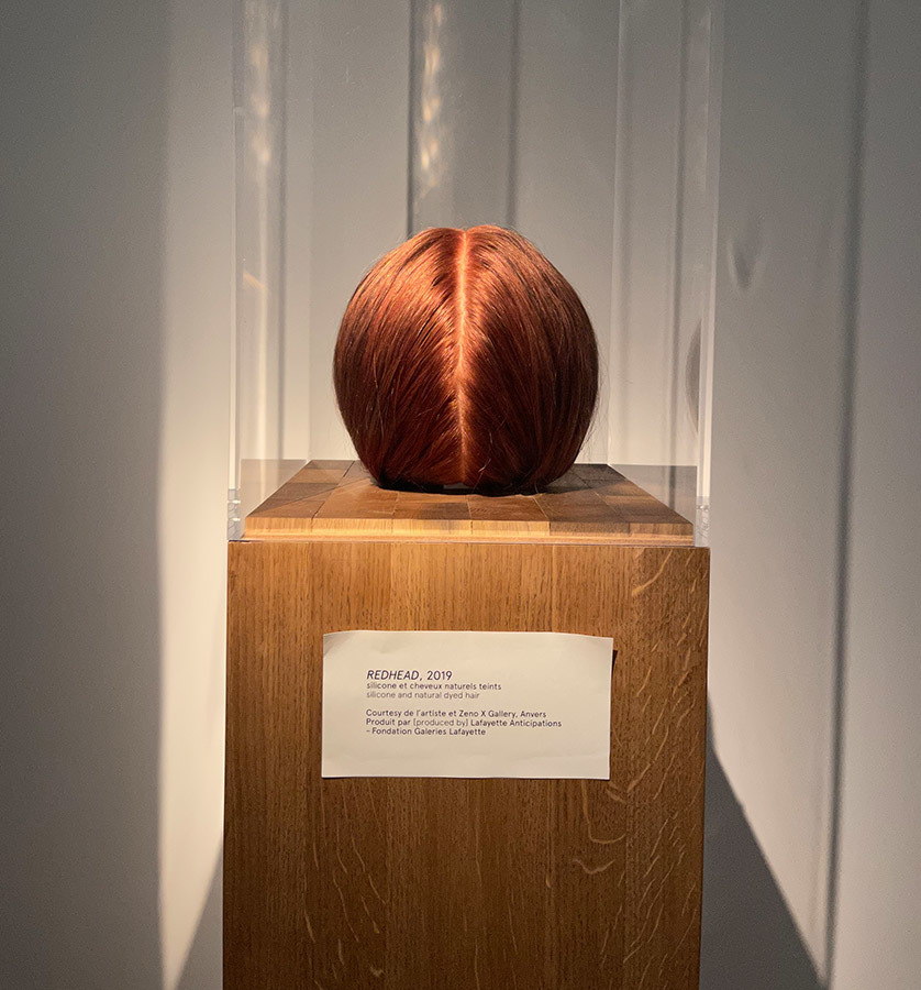 Первая работа — Hair Portraits (2015–2016) — задает тон выставке: лица популярных (насколько — мы не узнаем, ведь их имена намеренно держат в секрете от зрителя) актрис и певиц скрыты под волосами. Тут же еще две похожие работы на тему анонимности — Redhead (2019) и Vanitas (2019). Если первая — трибьют суевериям, то вторая символизирует пять стадий жизни женщины. Конечно, спрятанные лица и парики — узнаваемые элементы почерка Мартина Маржелы. К этим медиумам дизайнер обращался не раз, начиная со студенчества, и на протяжении всей карьеры постоянно развивал через них тему анонимности. Самые яркие примеры — трибьют Sonia Rykiel в год сорокалетия французского дома, украшение с прядью волос, которое впервые появилось на подиуме в коллекции весна—лето 1999, а потом повторилось в коллаборации H&M x Margiela, и, наконец, его последняя коллекция для собственного дома, весна—лето 2009.