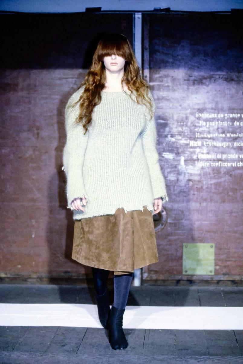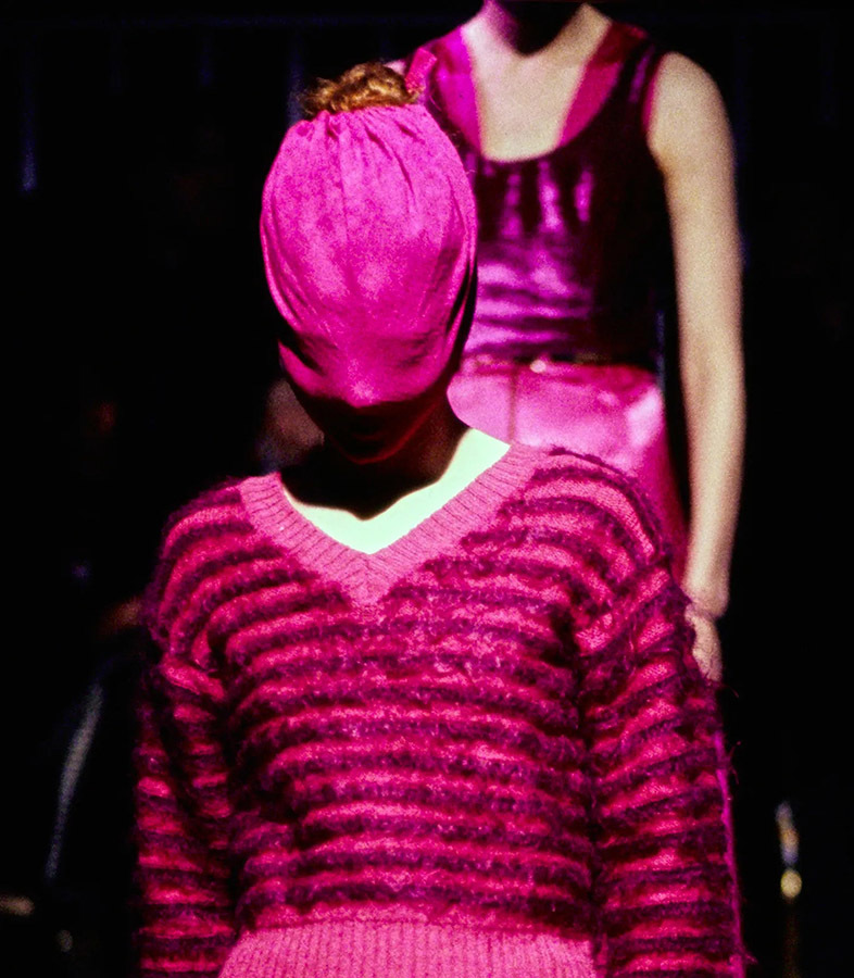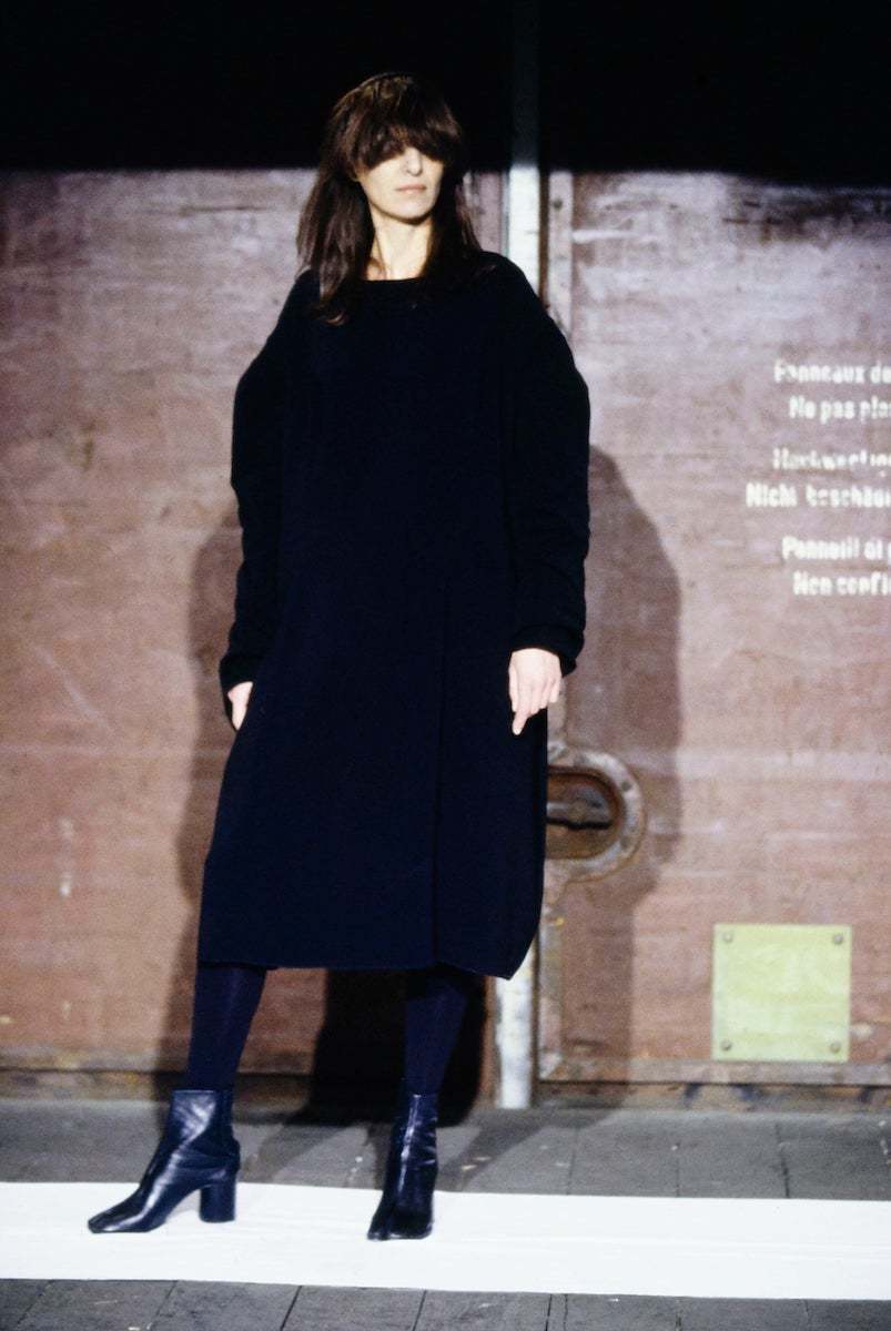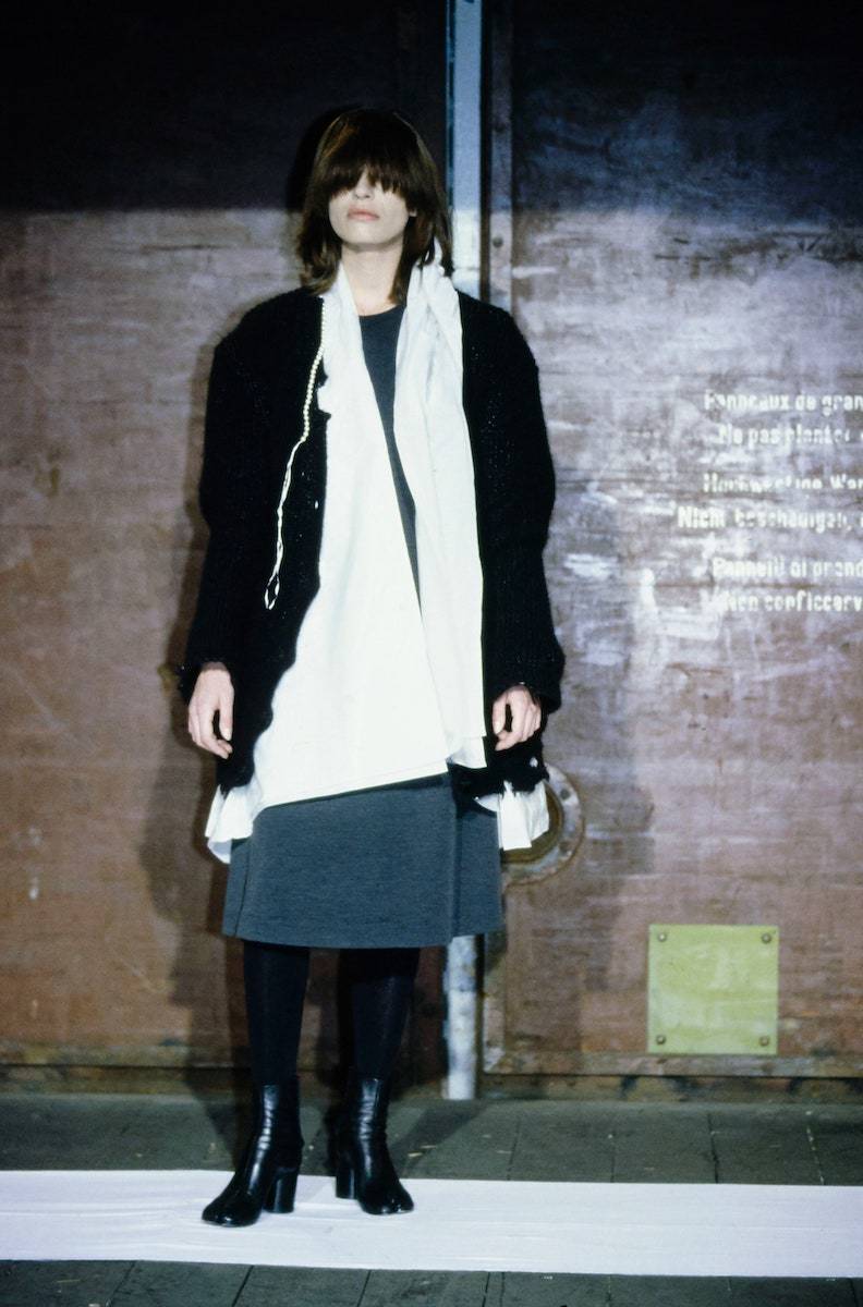 Если бы приходилось выбирать самую радикальную коллекцию Мартина Маржелы, то ею была бы она — осень-зима 2000. Пока Том Ford в Gucci и Джон Гальяно в Dior открывали тело — Маржела скрывал его за множеством слоев.