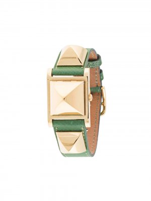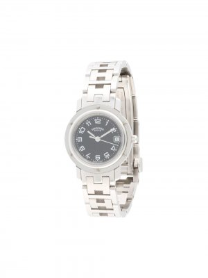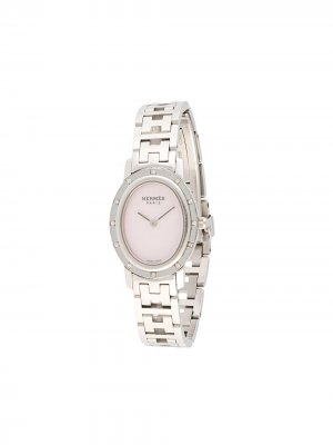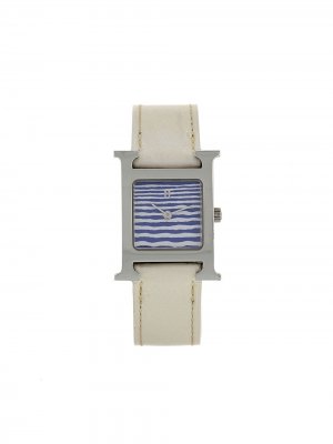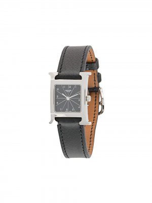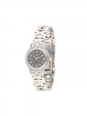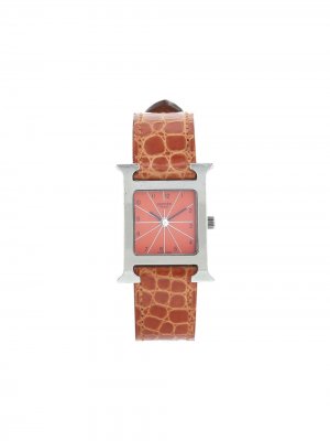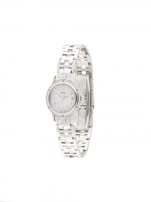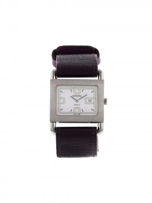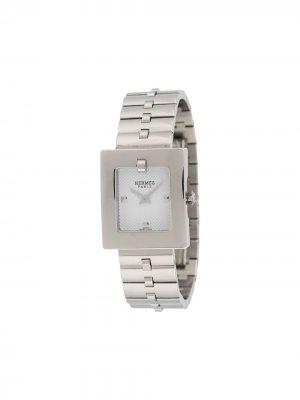 Наручные часы 2000-х годов от Hermès. Кварцевый механизм, регулируемый размер и прямоугольный циферблат. Цвет: серебристый. Обратите внимание, что это товар с историей. Несмотря на отличное состояние.
