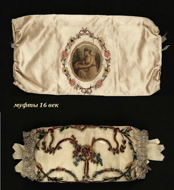 Кокетки-итальянки носили муфты, отделанные лебяжьим пухом, с пуговками из золота или хрусталя, а иногда вешали их на шею с помощью шёлковых лент.