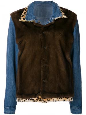 Синяя с коричневым куртка ‘Jeans Celeste’ из хлопка и меха норки от Simonetta Ravizza.