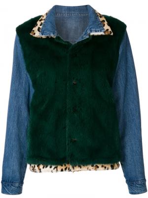 Зеленая с синим куртка ‘Jeans Celeste’ из хлопка и меха норки от Simonetta Ravizza.