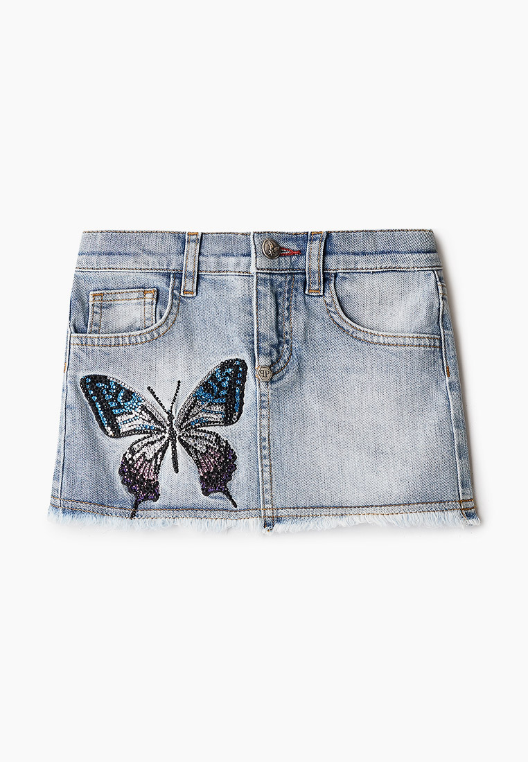 Юбка джинсовая Philipp Plein. Цвет: голубой. Сезон: Весна-лето 2021.