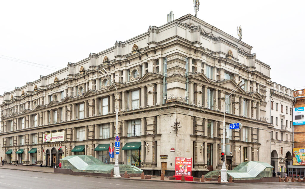 Проспект Независимости – лицо нашей столицы, где каждое здание – памятник архитектуры прошлого века. Массивные, пышные сооружения со строгим декором, построенные в стиле сталинского ампира. Среди них самое узнаваемое – здание ГУМа.