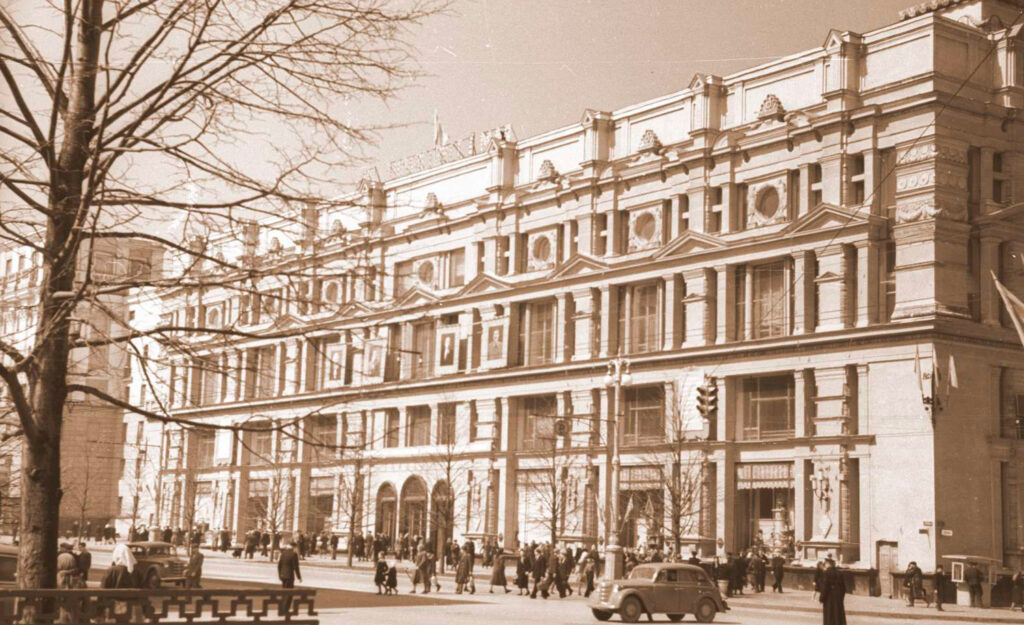 В те годы это было самое модное и современное здание в городе. Однако после войны помещение универмага сильно пострадало. Потому 26 июля 1945 года в Кремле было принято решение о строительстве нового универсального магазина. Тогда ГУМ стал первым объектом вновь создаваемого архитектурного центра столицы.