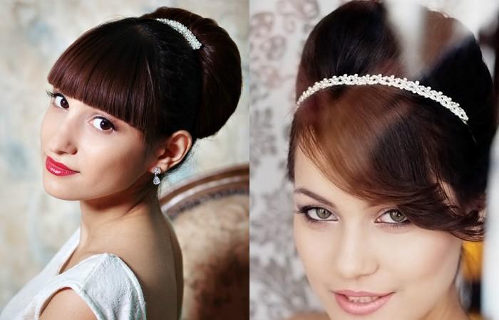 - Красивые укладки в стиле шестидесятых для девушек с челкой