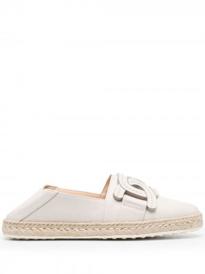 Аппликация, закругленный носок, мягкий задник, модель без застежки и плетеная подошва из рафии. Цвет: белый.