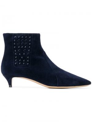 Ботильоны с украшением из заклепок от Tod’s (Тодс). Низкий каблук, заостренный носок и застежка на молнии сбоку. Цвет: темно-синий. Размер отличается от стандартного. Рекомендуем покупку на полразмера.