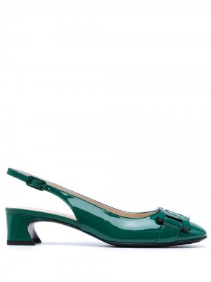 Цепочка, закругленный носок, ремешок на пятке, стелька с логотипом и низкий каблук. Цвет: черный.