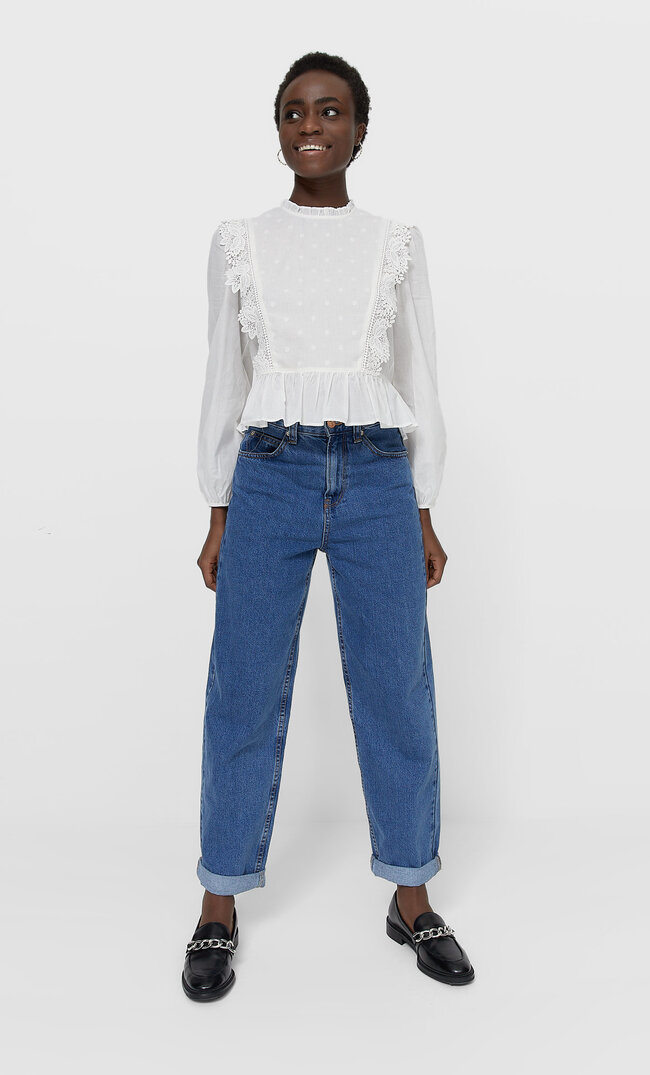 У весенних блузок будут более открытые, распахнутые вырезы и в рукавах не будет столько ткани с явным заужением у запястья и эффектом стекания. Много подходящих моделей из хлопка и все вариации джинсовой ткани.